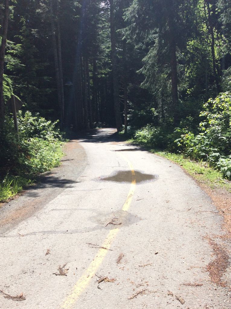 トレイルコースっていうのが車が走る道路とは別にあって、チャリやスケートがこの道を通っているんですよ。日陰に入るとなかなか気持ちよくて癒やされます。