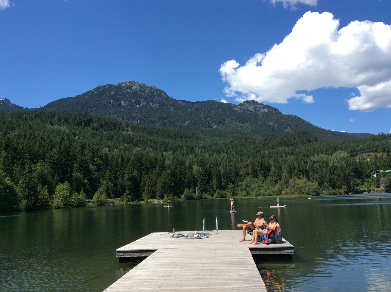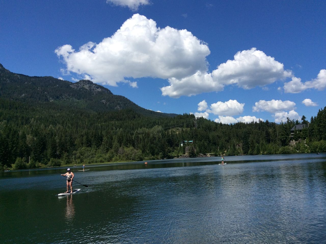 ニタレイクではまったりと、サーフィンみたいなボートを漕いで楽しんでいる人がいますね。